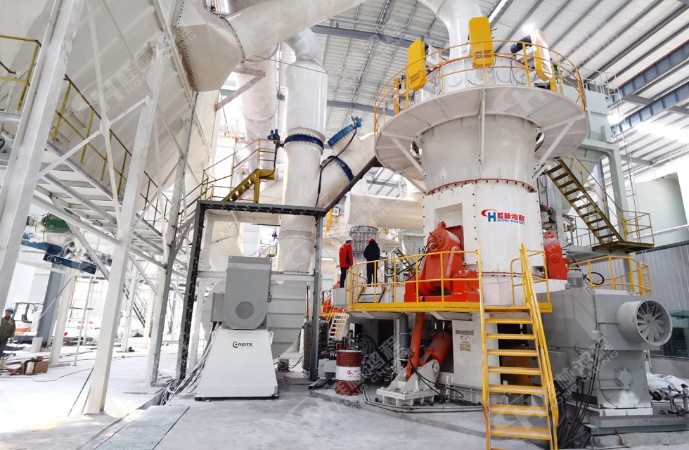 崗石是一種人造石,它是以天然大理石、貝殼、玻璃、馬賽克等為主要原材料,配以高分子聚合物為黏結劑,經過先進的制造工藝精制而成的綠色環保建筑材料。由于人造崗石具有無毒性、低放射性、阻燃性、抗菌防霉、耐沖擊、花色豐富等優點,且充分實現了礦山開采下來的廢石尾礦變廢為寶,正逐步成為裝修建材市場上的新寵,在石材行業中具有較大的發展潛力。廣西賀州大理石資源豐富,是我國主要的人造崗石生產基地,形成了“礦山開采-天然石材-重鈣粉體-人造崗石-涂料塑料-廢漿廢渣再利用”的綠色循環產業鏈。桂林鴻程作為專業的崗石填充料生產線設備供應商,在賀州承建了多條人造崗石生產線EPC總包項目,獲得了當地市場的廣泛好評。近日,賀州某崗石企業由于擴產需求,第三批次從我司采購超細立磨,用于崗石填充料碳酸鈣的生產,目前該企業共采購了我司五臺超細立磨,下圖便是人造崗石填充料生產線車間現場圖片。那么,人造崗石怎么生產?崗石立磨在人造崗石生產線中又起到了什么作用呢?下文就由鴻程小編為您一一解答。