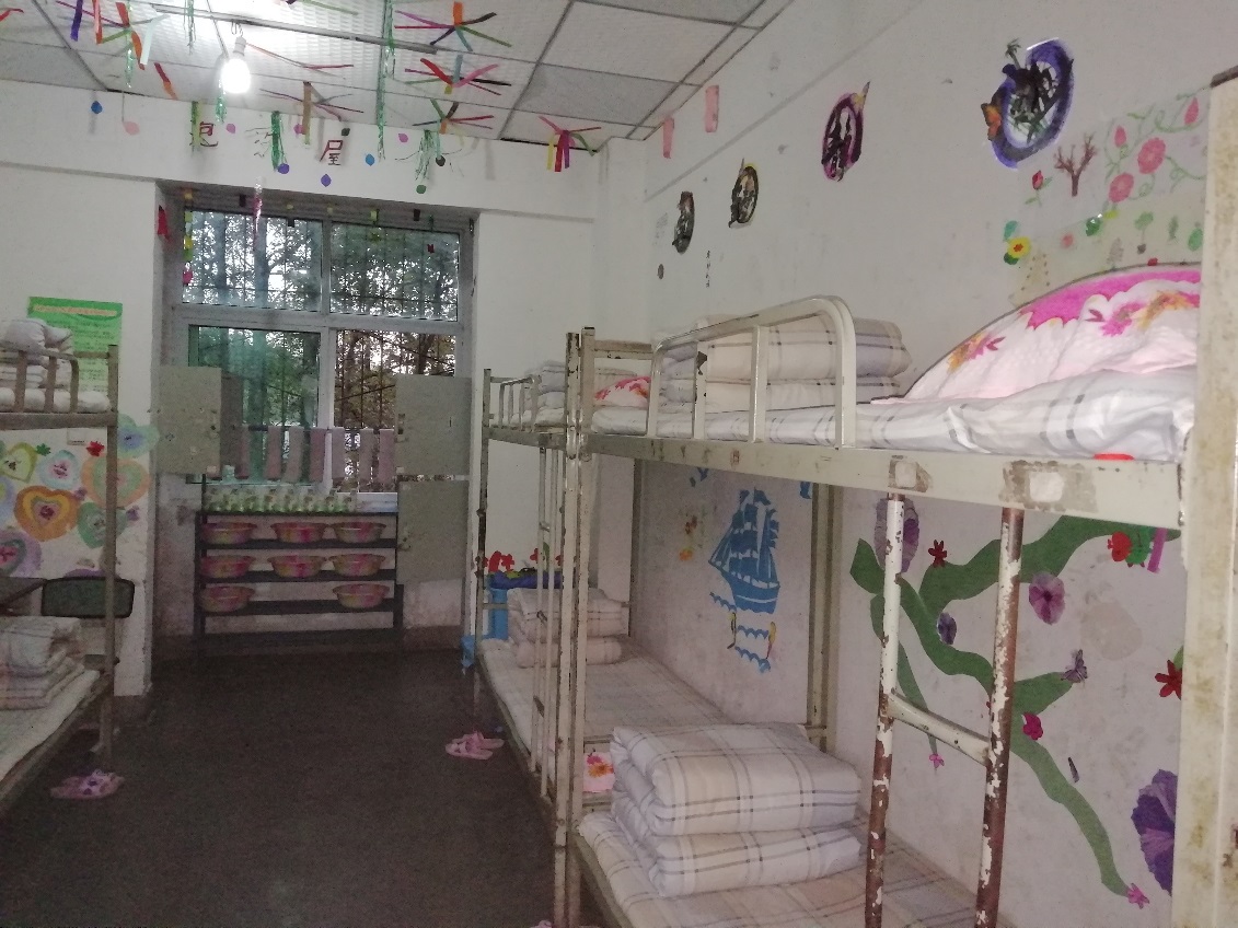 會后,袁秘書一行來到布拖縣拉達鄉中心校,在佛山派駐布拖任縣委辦副主任許建文、布拖縣教育和科學技術知識產權局局長胡子丹、拉達中心校校長吉玲英等陪同下,參觀了校舍。盡管宿舍條件簡陋,但床鋪整整齊齊,被子疊得方方正正,拖鞋、洗漱用品等也擺放有序。宿舍天花板上點綴著彩帶,墻上手繪或貼著各種圖案,彰顯了孩子們的愛美之心。宿舍門口的墻上,掛著寢室室長的鏡框,白底彩照下面,是“米色么小李”、“阿牛么惹扎”、“俄底么計生”、“帕查么拉克”等彝族名字,另一張寫著“樂學立德,行小以達”的校訓,校訓下面寫著“一本書被打開了,你的心房將永駐陽光”。雖然天色漸暗,氣溫下降到十多度,但這句話卻讓人頓生溫暖。
