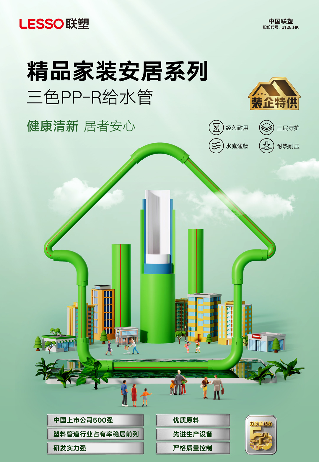 家裝藍(lán)凈瓷芯系列三色PP-R給水管是2023年推出的家裝新品,管材采用三層共擠技術(shù),具有三層結(jié)構(gòu),外層為阻光層,中間層為抗沖擊加強(qiáng)層,內(nèi)層為白色PPR,耐壓耐溫性能優(yōu)越。三層守護(hù),健康清新,居者安心。
