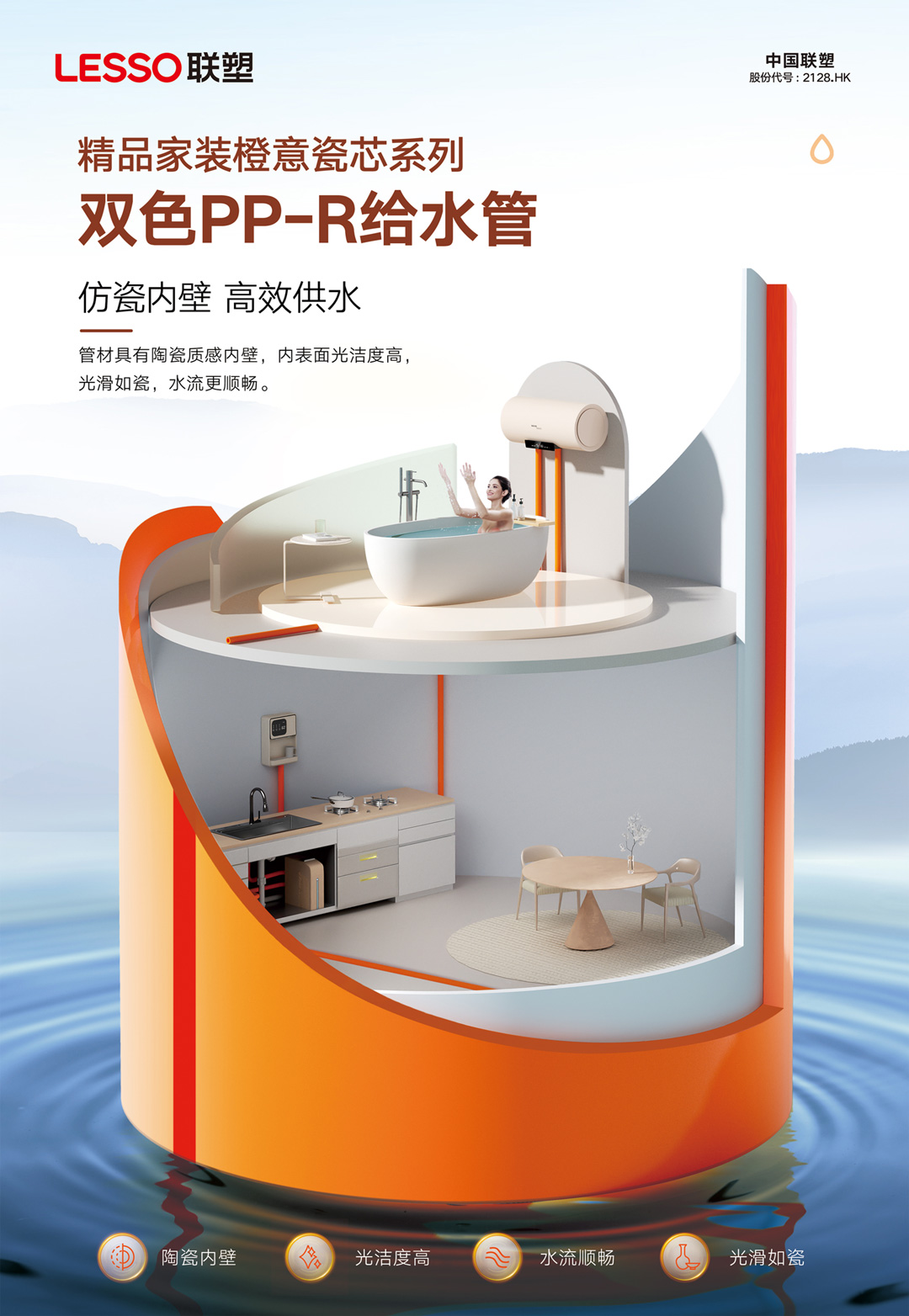 家裝橙意瓷芯系列是我司2024年推出的家裝新品,管材采用雙層結構,外層為阻光層,內層為防陶瓷層,具有陶瓷質感,內表面光潔度高光滑如瓷,水流更順暢。