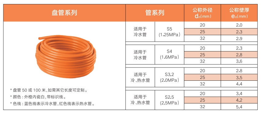 3.耐熱耐壓,經久耐用:耐溫耐壓性能優(yōu)越,輸送水長期正常使用工作溫度 70℃,瞬時使用溫度可達 95℃;
